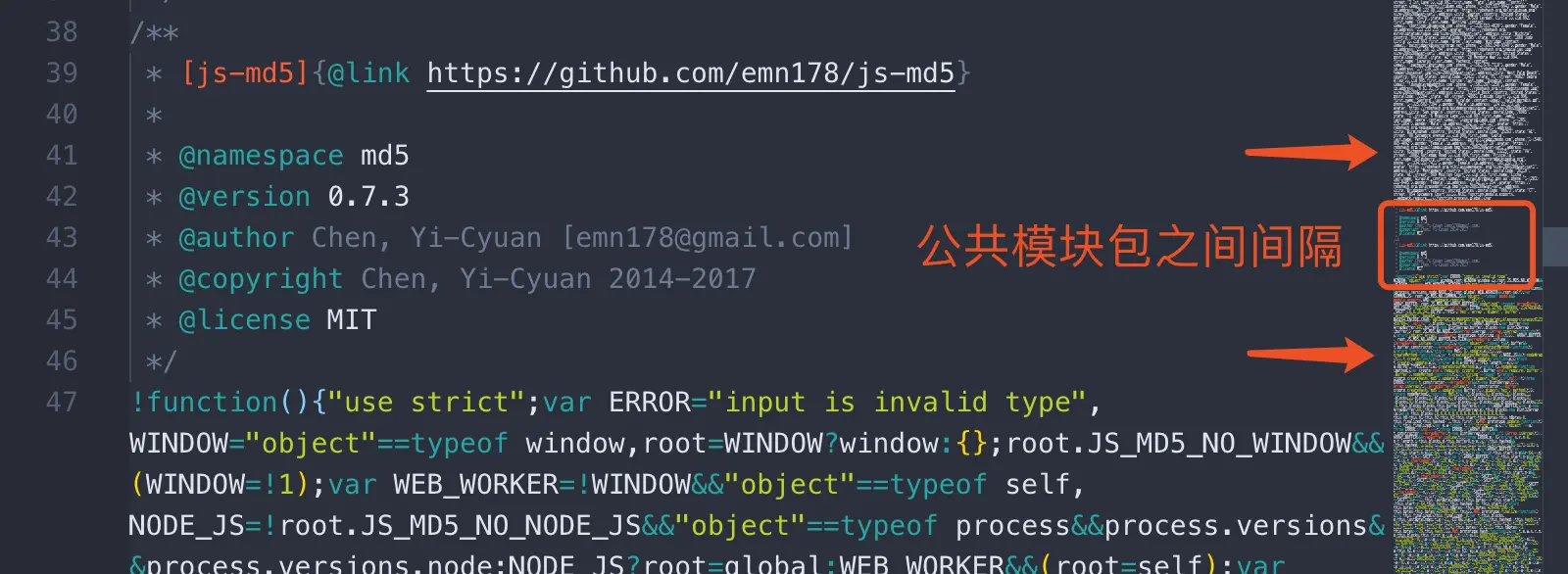 依据错误提示,打开工程dist目录下/static/js/vendor.js,可以发现这是一个公共包,如果在多个页面或者模块使用到有相关的代码,那么该代码会被Webpack识别为公共代码,公共代码都会被抽离到这里来,从保留的注释,我们大概能知道哪些内容是公共部份。