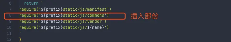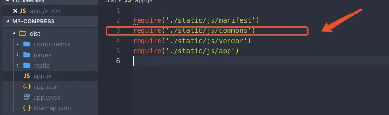 上一步骤解决了webpack配置问题,会生成多一个叫commons.js的公共包,但还需解决另一个问题,打包文件对该文件的引用。