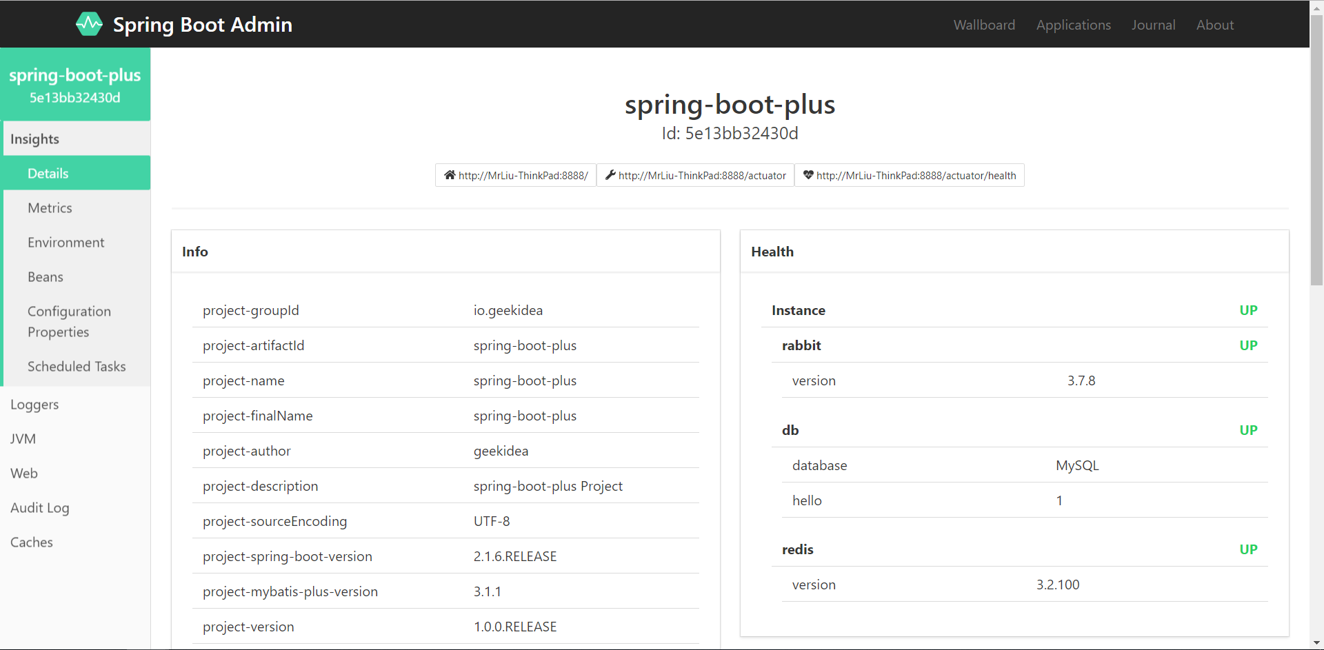 Spring Boot Admin 实例面板