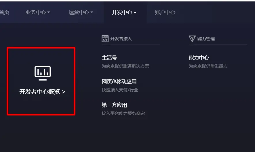 点击开发者中心概览