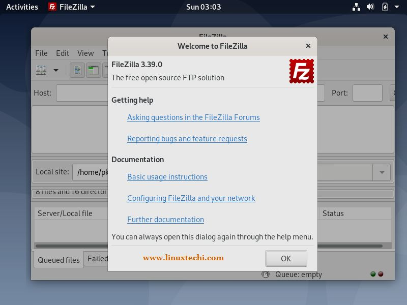 root@linuxtechi:~$ sudo apt install filezilla -y