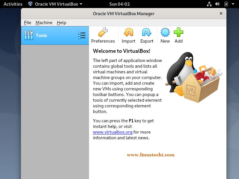 一旦 VirtualBox 软件包被成功安装,尝试访问它,并开始创建虚拟机。