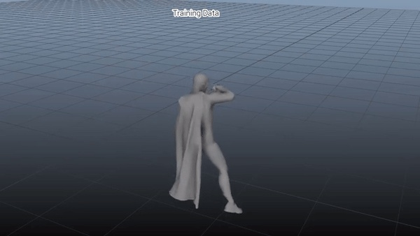 作者使用Maya软件的nCloth离线获取训练数据X和Y,执行PCA获得压缩的表征Z和W。然后将Z和W输入神经网络φ进行训练,预测z*的压缩状态、给定对象z的先前状态zt-1,以及外部对象的压缩状态w*,从模型输出直接计算模拟对象位置x*和法线ñ*,用于渲染。