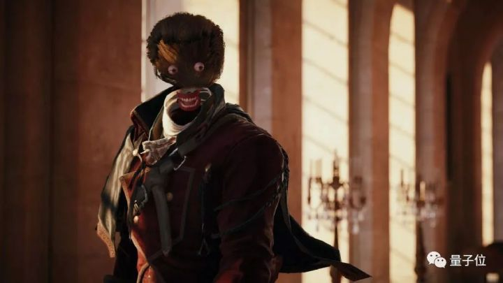 比如《刺客信条:大革命》中,主角的脸部建模突然失控,变成一张“滑稽脸”。