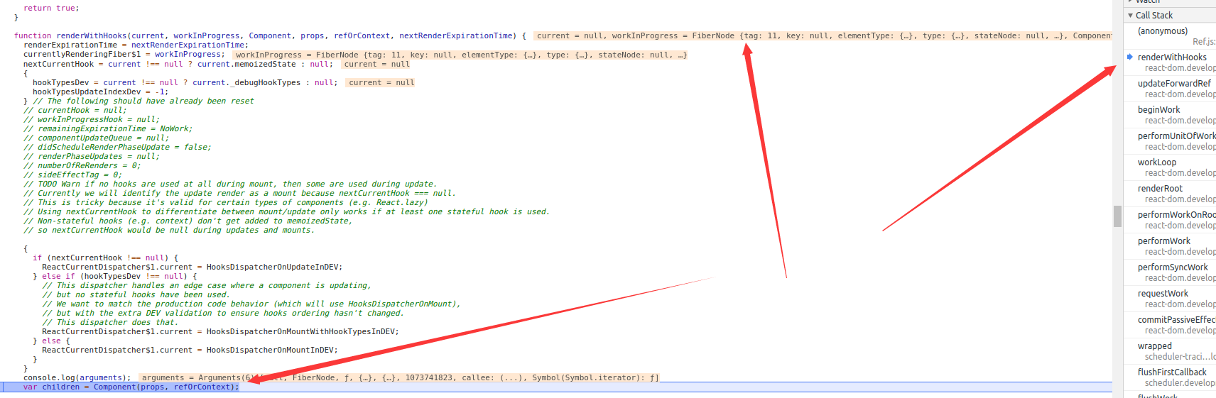 本次调用时 renderWithHooks 的参数。