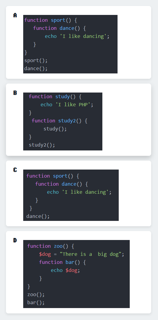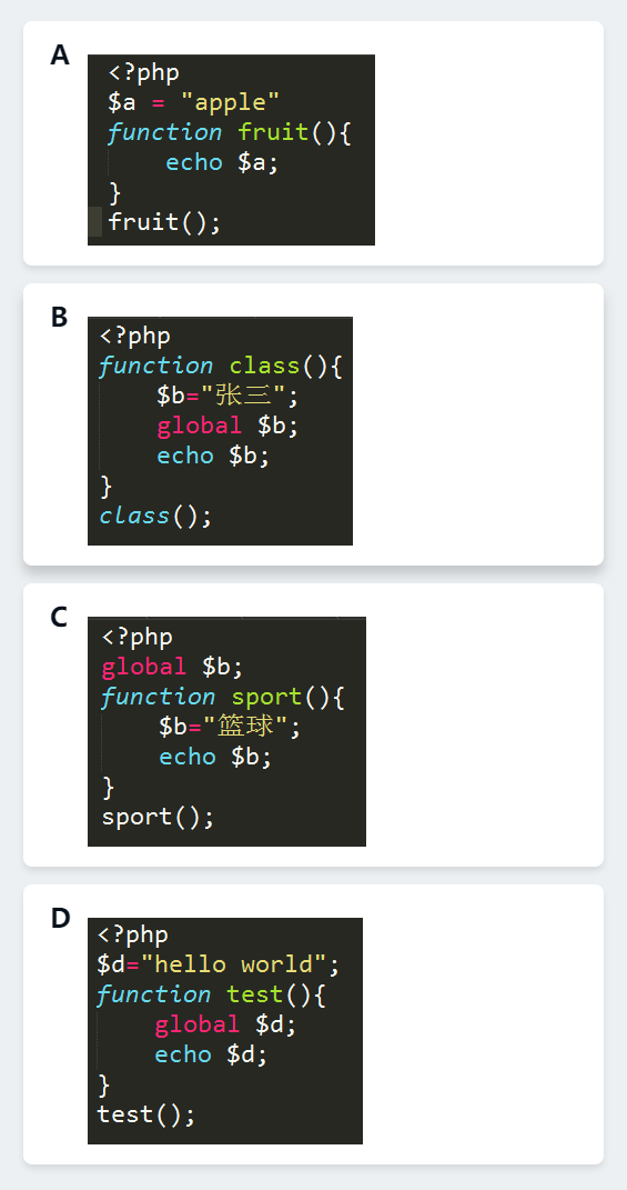 下列选项中不符合PHP自定义函数标准的是?()(选择一项)