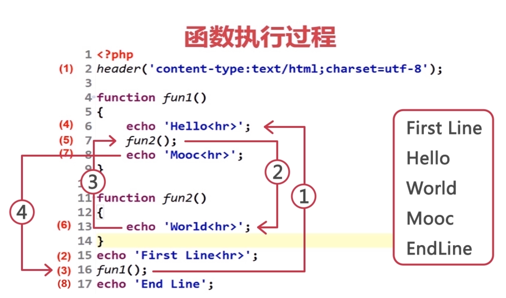 $a = demo();==> 调用函数, 并使用变量$a, 接收返回值demo();==> 只是调用函数