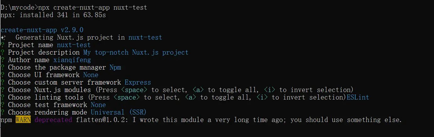 npx create-nuxt-app <项目名>