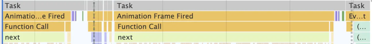 把 Main 放大以后,我们就可以看得出来,我们把每一个任务都给切开了,然后计算了样式,直接完成了绘制,把 dom 直接放在了页面上,让用户在第一时间看见了内容
