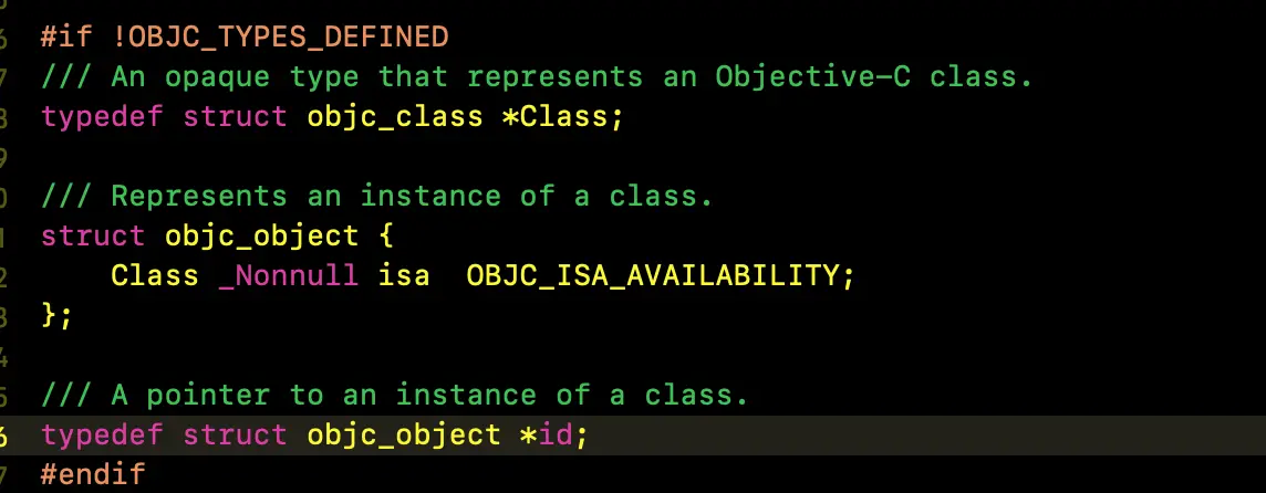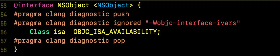 NSObject 是OC的基础对象类型,是通过C/C++的结构体进行面向对象封装而成的,在runtime的源码里,是对 Class 类型的 isa 的一个封装。