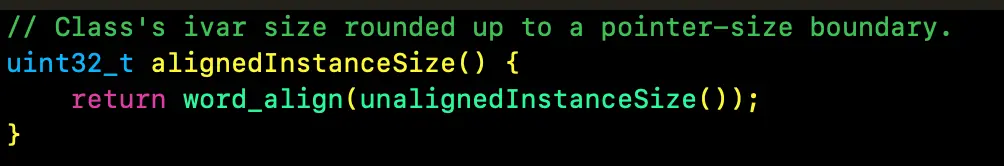 class_getInstanceSize ,得到的说明是返回的参数类的成员变量大小,向上取整到指针大小的界限。