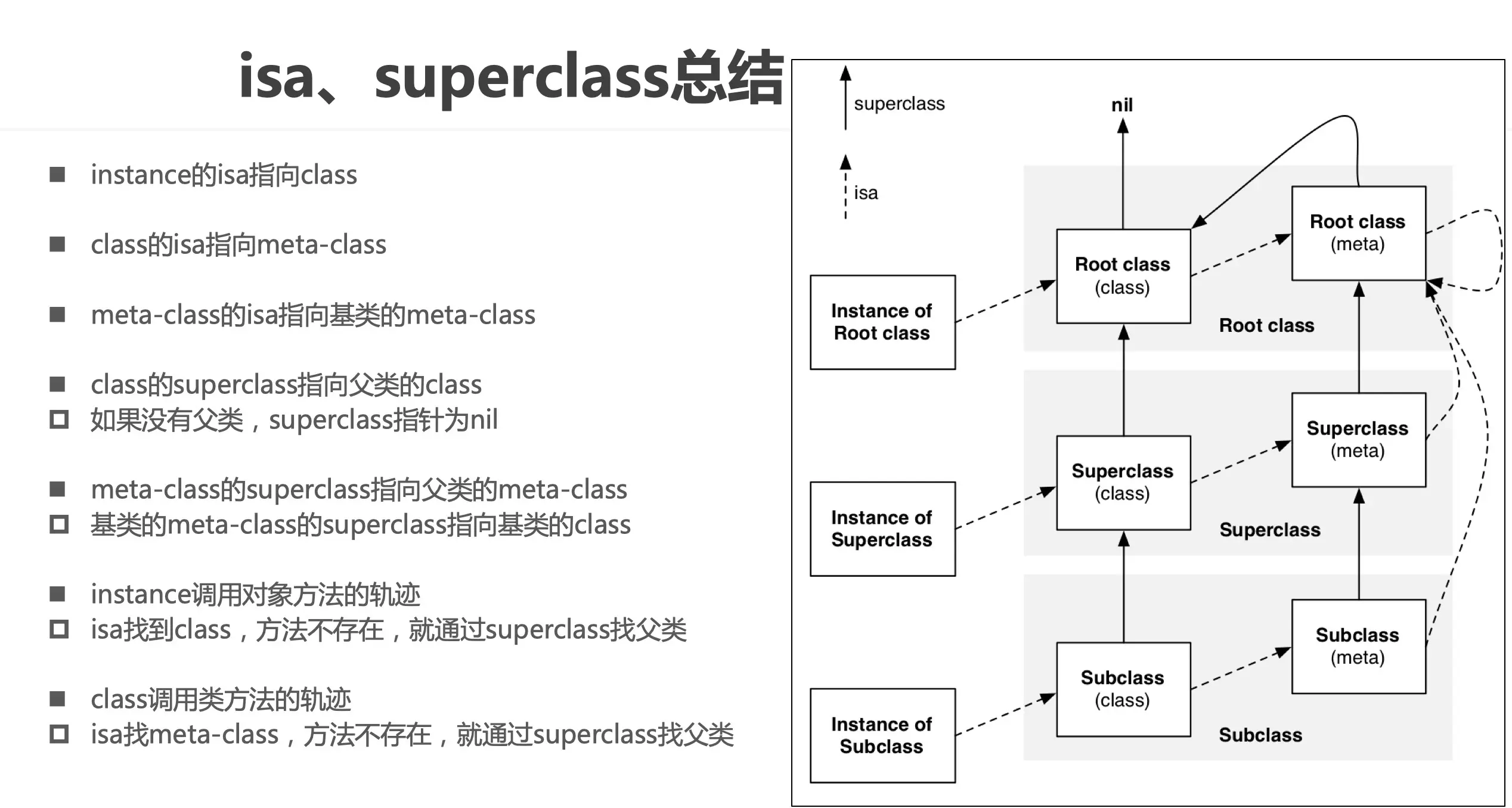 alloc出来的对象,每次调用alloc都会产生一个新的实例对象。 - class 类对象,每个类在内存中有且只有一个类对象。