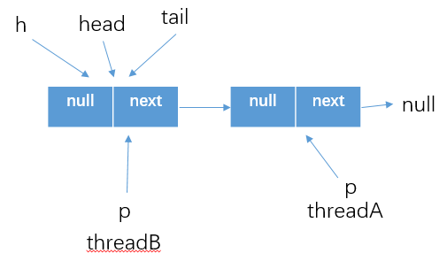- 之后threadA执行updateHead方法更新了head的指向,并将原head的next结点指向自己.那么线程B执行