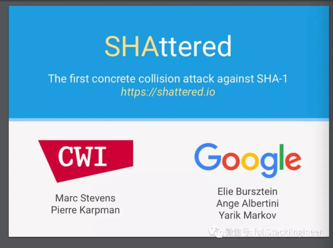 谷歌工程师对于两张不同的PDF,通过sha1算法获取文件hash值得时候,发现他们的hash完全相等。pdf1pdf2
