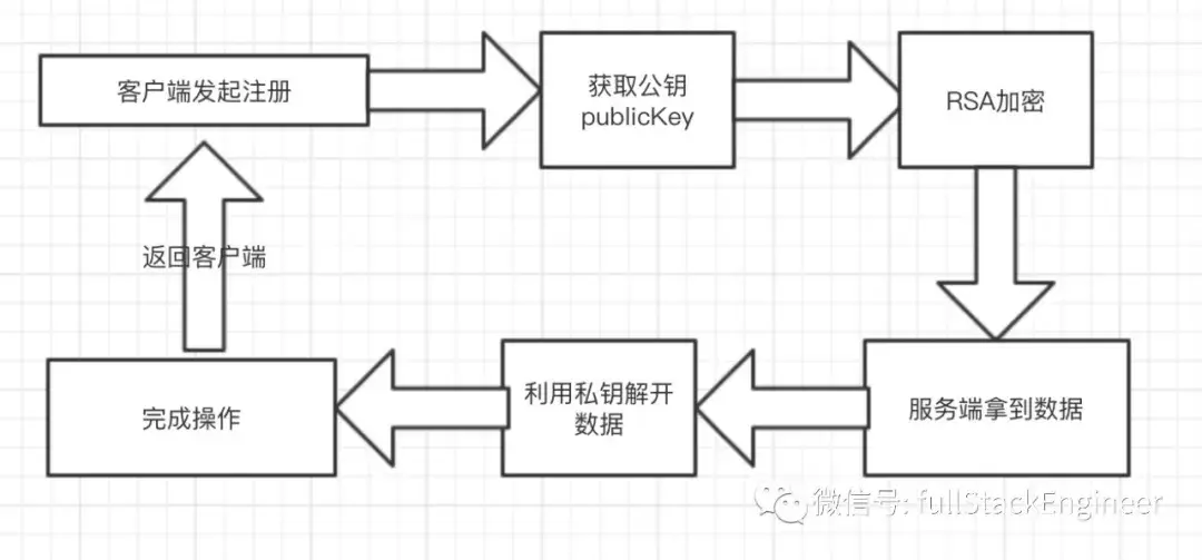 select DES_decrypt(DES_ENCRYPT('手机号码', 'my-key'), 'my-key')当我们在注册的过程中,甚至连手机号都不想暴露,但是又不能使用对称加密,因为对称加密需要秘钥协作完成,此时我们就需要一种新的方式完成,首先要使得前端传输的 数据加密,其次注册信息在后台还要能解析开,这时候就需要两把钥匙,一把能够公开的,一把不能公开的,它两必须是一对一的,客户端拿到公开的钥匙将数据加密,返回 至服务端,服务端拿私有的钥匙解开数据,完成过程,该过程就叫做非对称加密。