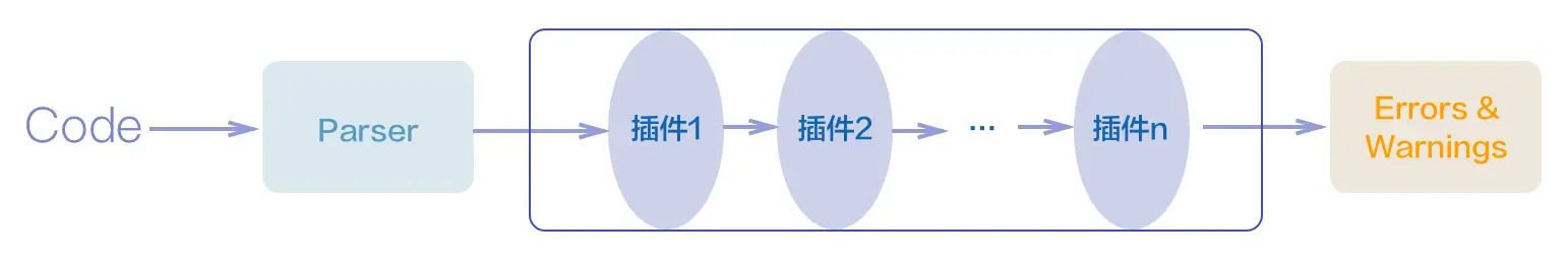 ESLint 的能力更像一个引擎,通过提供的基础检测能力和模式约束,推动代码检测流程的运转。原始代码经过解析器的解析,在管道中逐一经过所有规则的检查,最终检测出所有不符合规范的代码,并输出为报告。借助插件化的设计,不但可以对所有的规则进行独立的控制,还可以定制和引入新的规则。ESLint 本身并未和解析器强绑定,我们可以使用不同的解析器进行原始代码解析,例如可以使用 babel-eslint 支持更新版本、不同阶段的 ES 语法,支持 JSX 等特殊语法,甚至可以借助 @typescript-eslint/parser 支持 TypeScript 语言的检查。