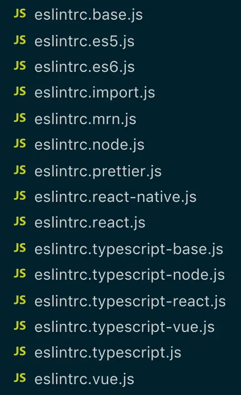 最终,形成了如下所示的 ESLint 配置集: