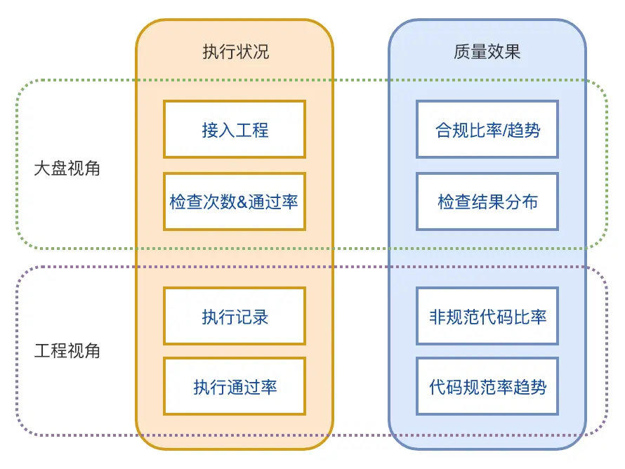 - 执行状况监测分析:通过对工具运行和代码集成交付检查过程进行埋点、检查结果收集和分析,了解方案的应用状态和效果。