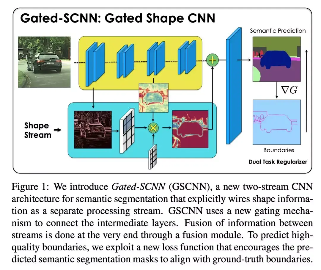 这篇论文是语义分割领域最新的成果(2019.07),作者提出了一个双流 CNN 结构。在这个结构中,目标的形状信息通过一个独立的分支来处理,该形状流仅仅处理边界相关的信息。这是由模型的门卷控积层(GCL)和局部监督来强制实现的。