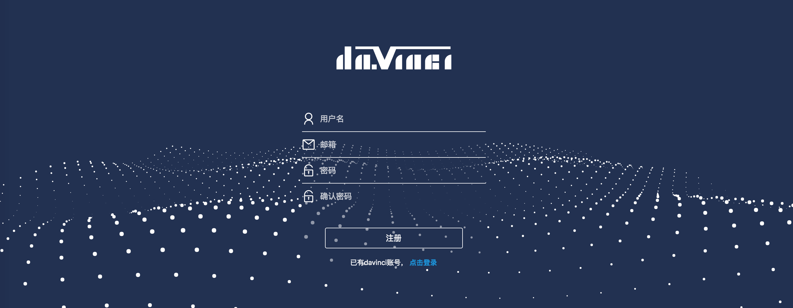 Davinci 0.3 需要用户自己注册系统账号,注册前确保邮件服务器已正确配置。填写真实的邮箱地址,用于接收注册邮件,密码不需要为邮箱对应的密码。点击注册后,到对应的邮箱中激活。