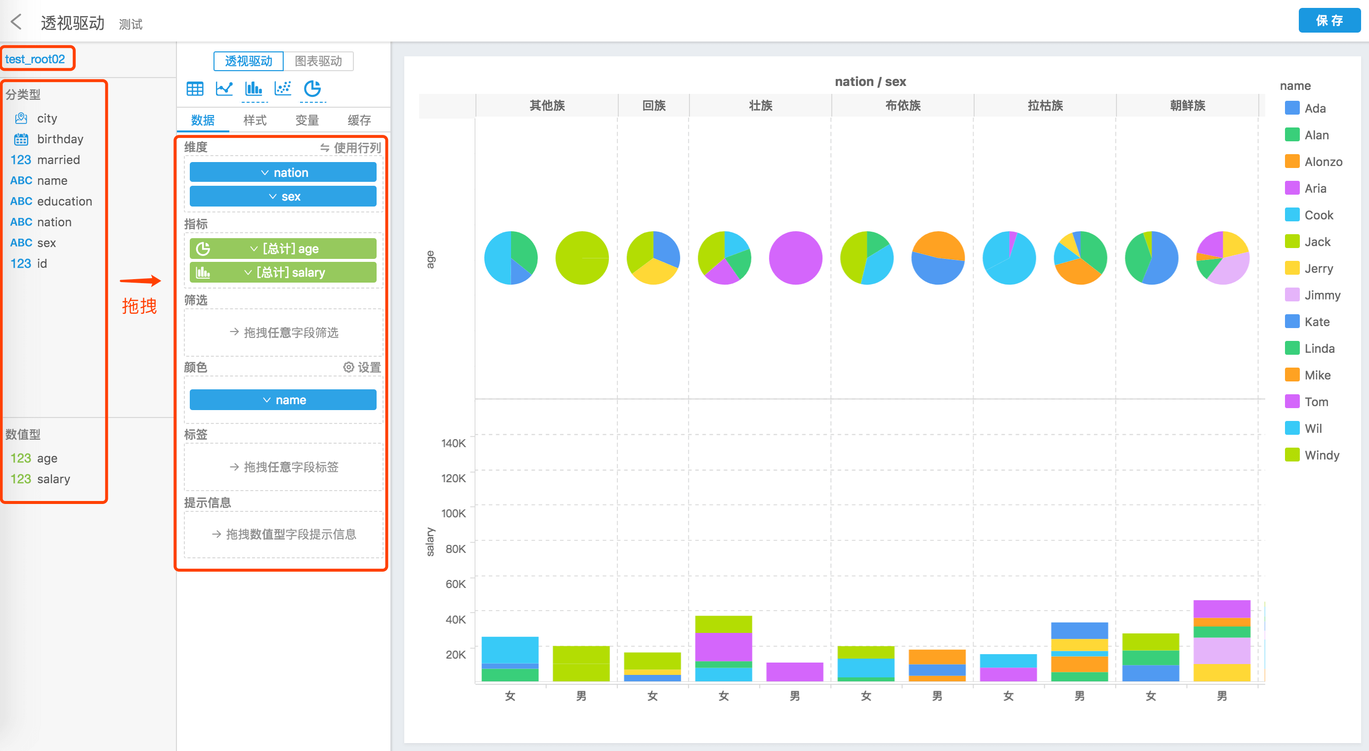 2、进入 Widget 编辑页,选择数据驱动模式以及想要的展示方式,并进行简单的图表配置,点击“保存”并退出。
