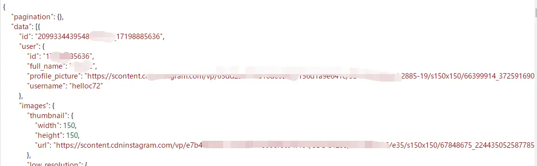 访问这个网址,得到了我的个人信息和我最近发送的图片