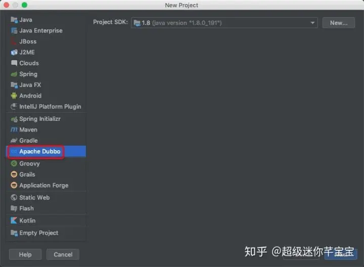 - 在弹出的对话框中选择 Apache Dubbo;