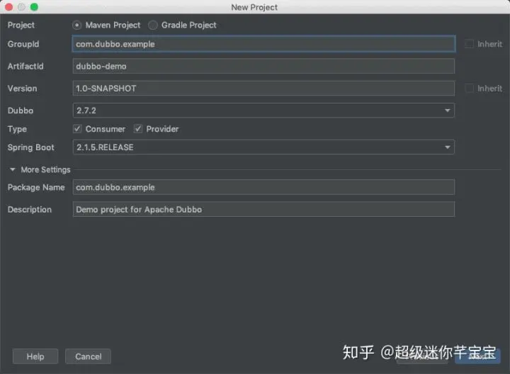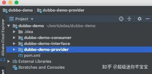 此时 IDEA 将会创建一个新的工程,里面包含了一个完成 Dubbo Provider + Consumer 的样例工程。