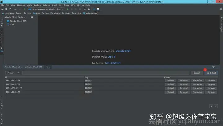 如上图所示,在菜单Tools - Alibaba Cloud - Alibaba Cloud View - Host 中打开机器视图界面,如下图:
