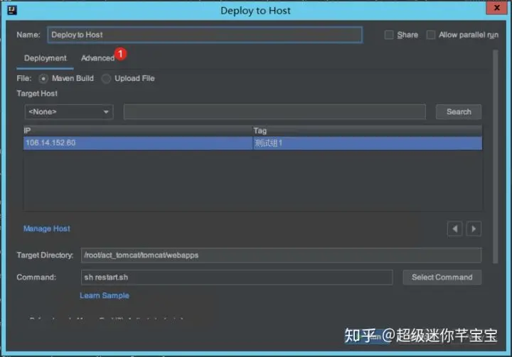 打开应用部署的配置界面,如上图所示,点击「Advanced」标签页,如下图: