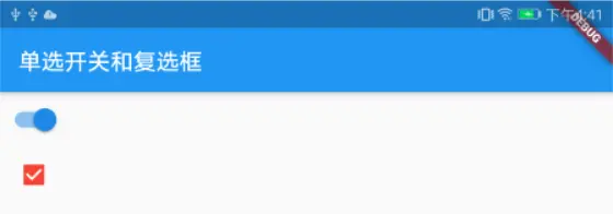 上面代码中,由于要维护Switch和Checkbox的选择状态,所以SwitchAndCheckBoxTestRoute继承自StatefulWidget,并在其_SwitchAndCheckBoxTestRouteState类中的build方法中分别构建了一个Switch和一个Checkbox,初始化状态都为选中状态,当用户点击时,会将状态置反,然后回调setState()通知framework重新构建UI。