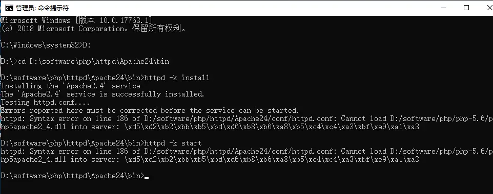 进入安装目录,比如我现在的安装目录就是D:\software\php\httpd\Apache24