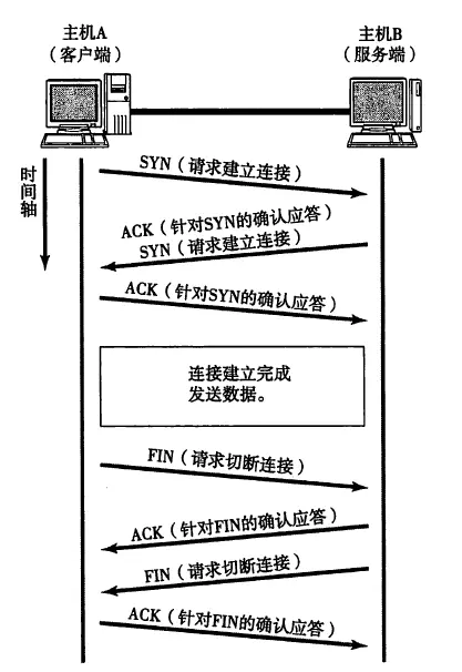 TCP三次握手与四次挥手 TCCP的三次握手指的是客户端和服务器的连接与断开的过程,三次握手和四次挥手的简单版本如下面这张图所示:(图片来自《图解TCP/IP》): 在整个通信的过程中至少需要来回发送7个包才能完成。