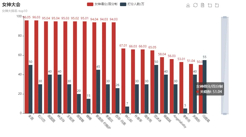 我这里直接给出了我通过百度 API 得出的女神新得分,一起来看看吧