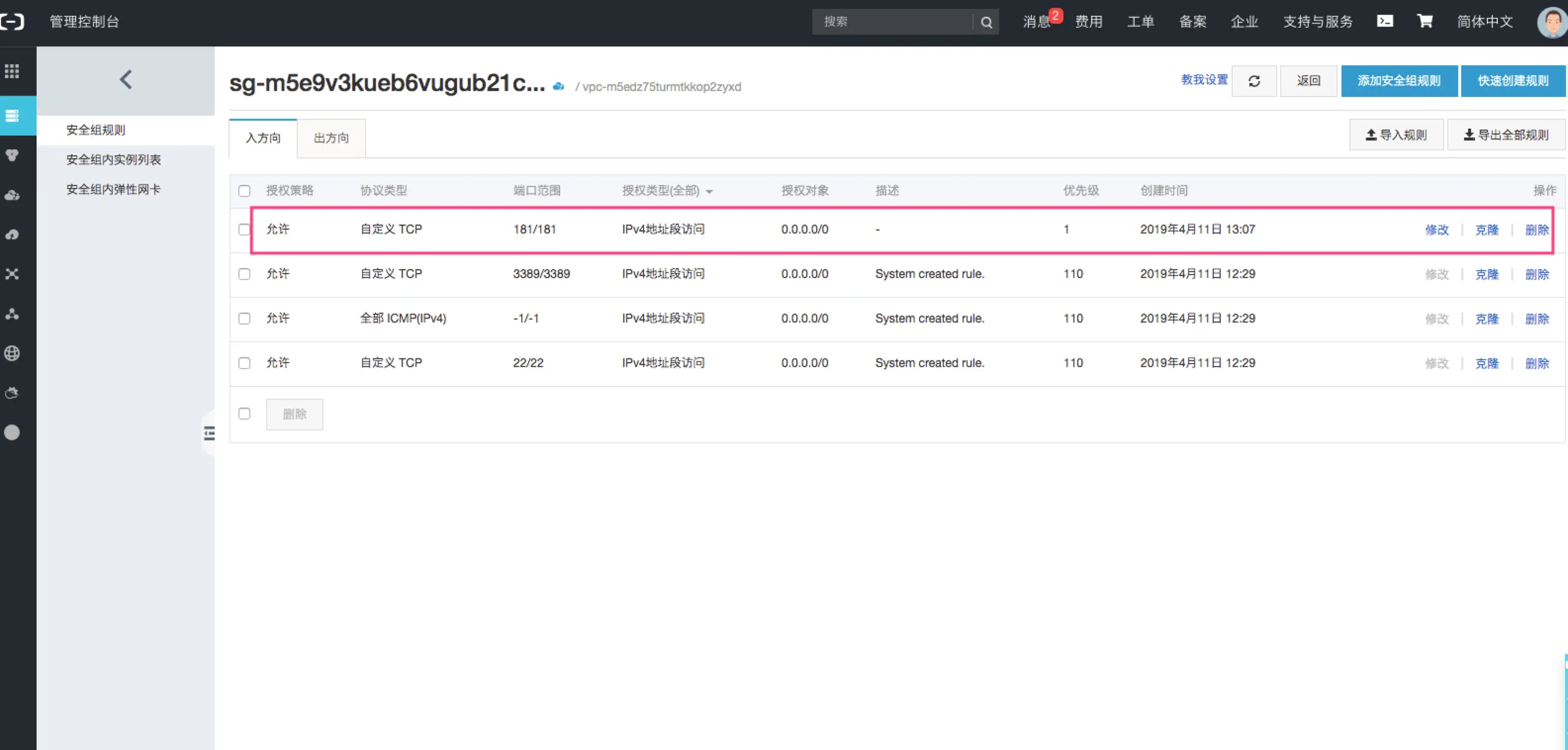 其他都和本地搭建都一样,只不过需要在 ECS 的安全组中暴露 181: