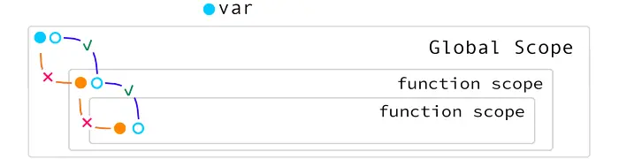 但是,当涉及到函数作用域时,所有变量类型,包括var,都将保持 仅限于其范围: