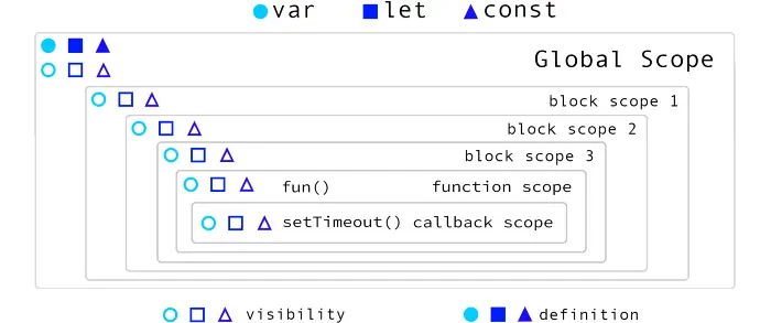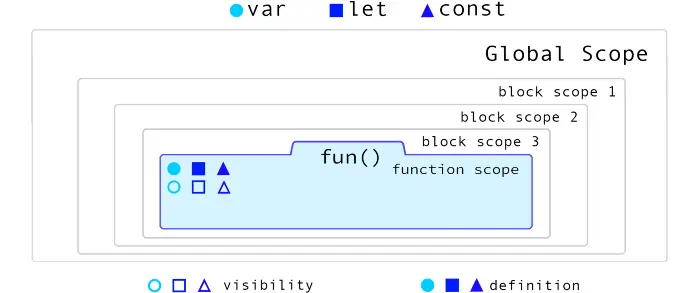 当我们开始在局部块级作用域或函数级作用域内定义变量时,作用域可见性差异就会显现出来。正如我们前面讨论过的,在全局作用域里没有差异。