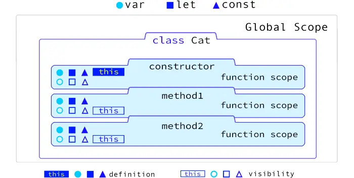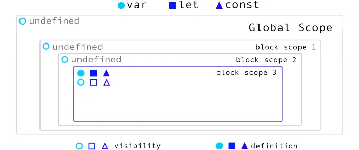 当变量在全局作用域中定义时,var,let和const在作用域可见性方面没有差异。