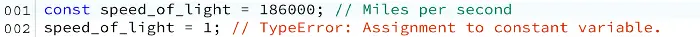 **const ** 这个const关键字不同于let和var。它不允许将先前定义的变量重新赋值给新值: