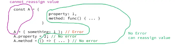 当涉及到对象文字时,const只让定义保持常量。 但这并不意味着你不能改变分配给const定义的变量的属性值: