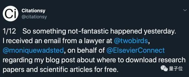 提供文献整理工具的Citationsy发表博客文章表示,因为自己在博客中提供Sci-Hub的最新网址,收到了Elsevier的律师函。