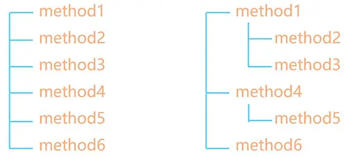 左边只体现了顺序,右边体现了顺序和调用栈信息。