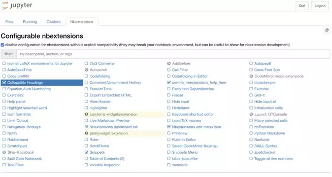 进入Jupyter Notebooks主页后,可以看到为NBExtensions创建了一个新选项卡。