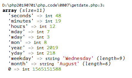 echo date('Y年m月d日 H时i分s秒'); // 获取的时间, 比北京时间晚8个小时