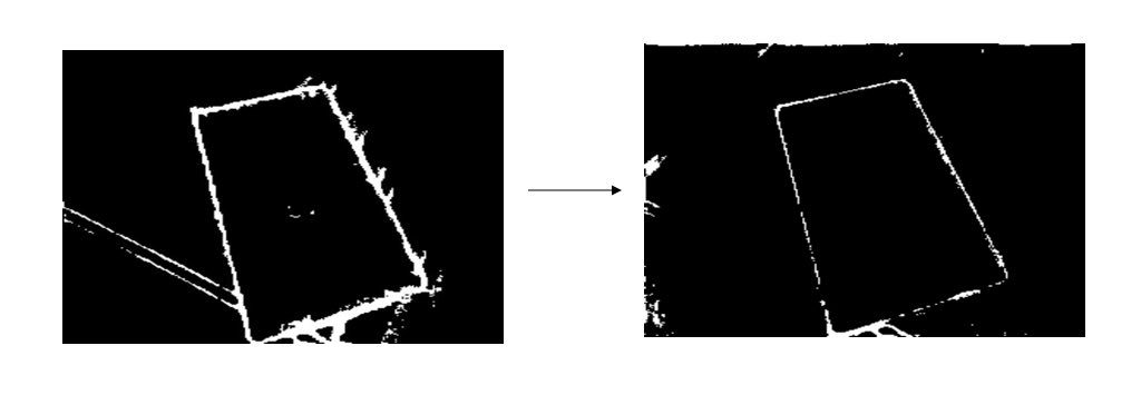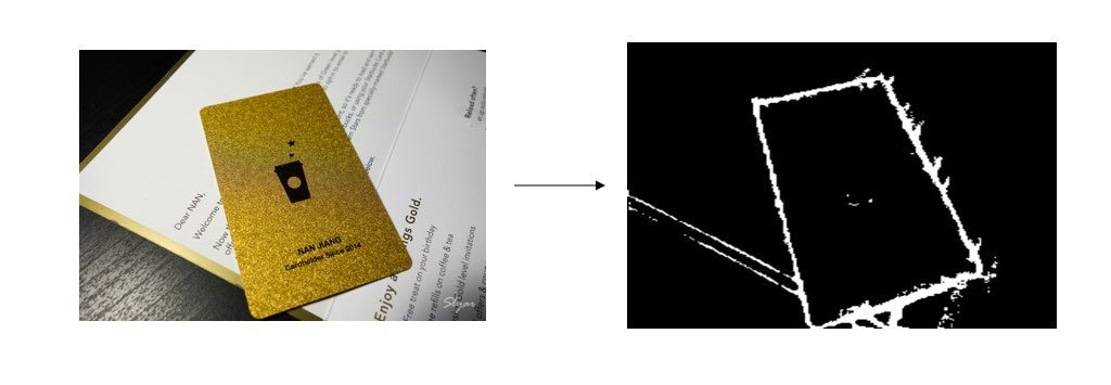 我们理想中的 Canny 算法效果应该是这样的,输入一张图片能精准的识别出我们想要的边缘线条,后续再配合 OpenCV 的线条检测功能可以很容易得识别出目标物体的位置: