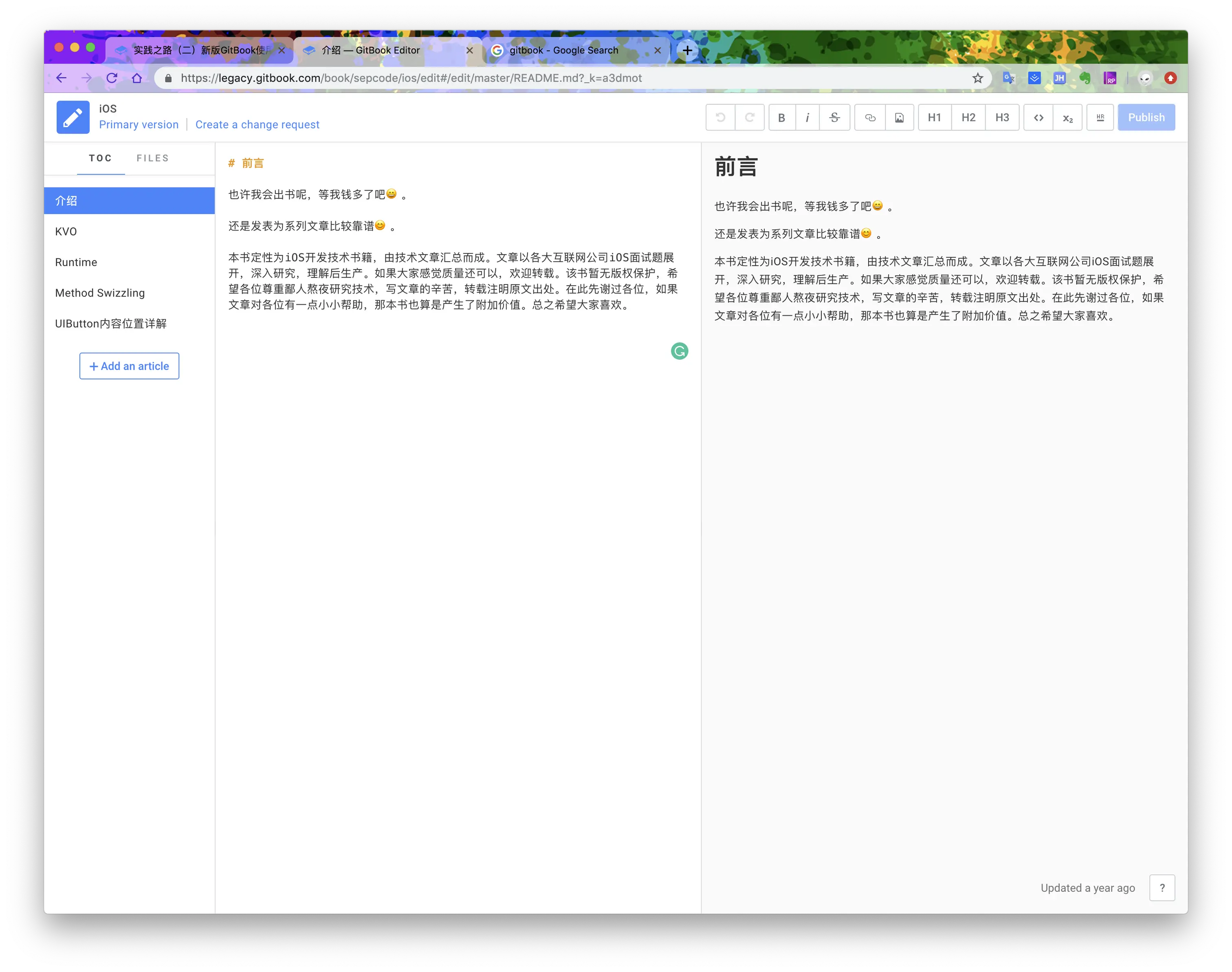 GitBook应该是笔者第一次接触Markdown使用的工具。目前GitBook分为新旧两个版本,旧版应该是较早支持Markdown和Git的写书产品,并且阅读体验也很棒,获得了很多用户。