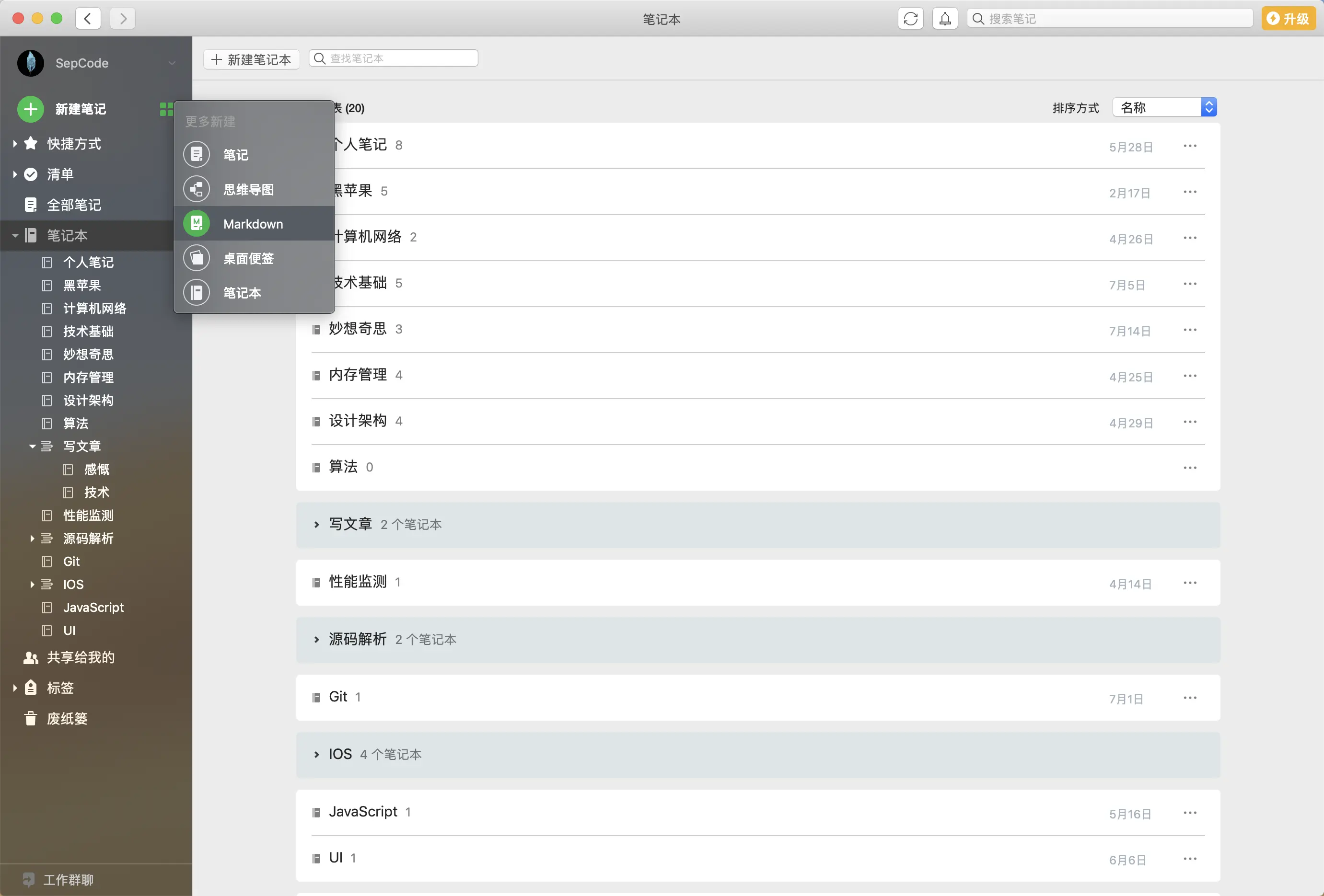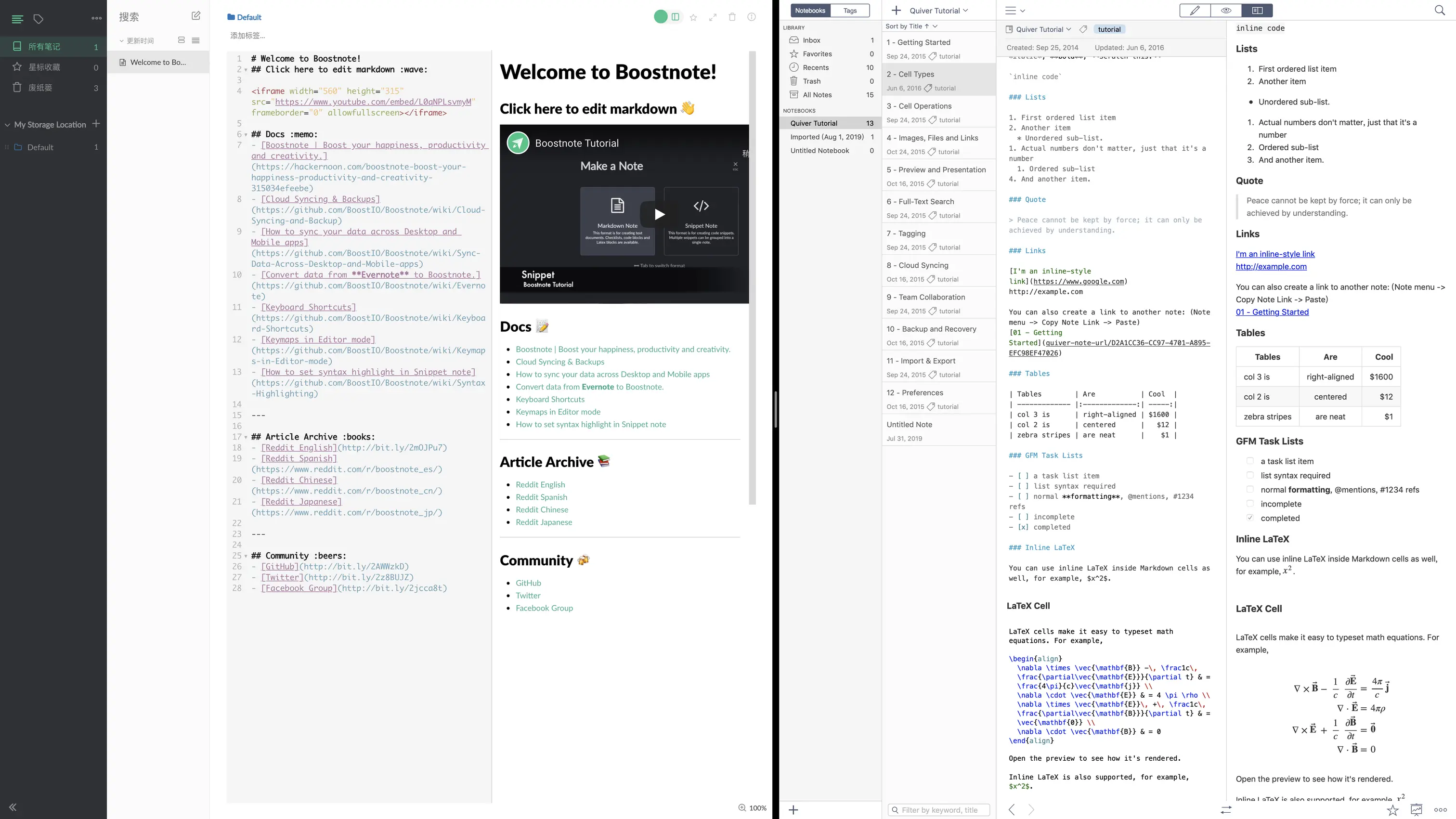 上图中左边是Boostnote,右边是Quiver,他们都宣称是程序员专用笔记工具,然而差别也同样很大。