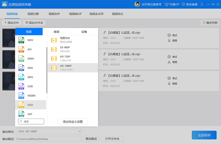 以上就是使用迅捷视频转换器将mp4视频转换成ogv高清视频的方法了。