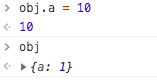 obj.a = 10 也失败。