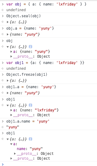 Objct.freeze 是完全冻住了这个对象。不能对它和他内部做任何做更改。